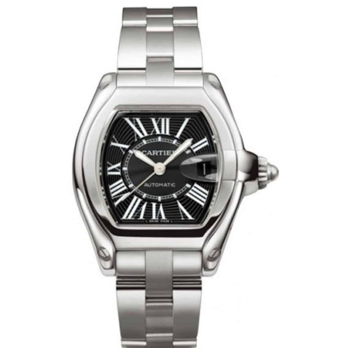 Cartier Roadster W62041V3 Black Sunray-Effect Roman Numeral Dial Stainless Steel Bracelet Watch Specifications: Case Shape Tonneau Case Dimensions 44.3mm x 38.7mm Case Material Polished with Brushed Stainless Steel Dial Color Black Sunray-Effect with Roman Numerals Crystal Sapphire Bezel…